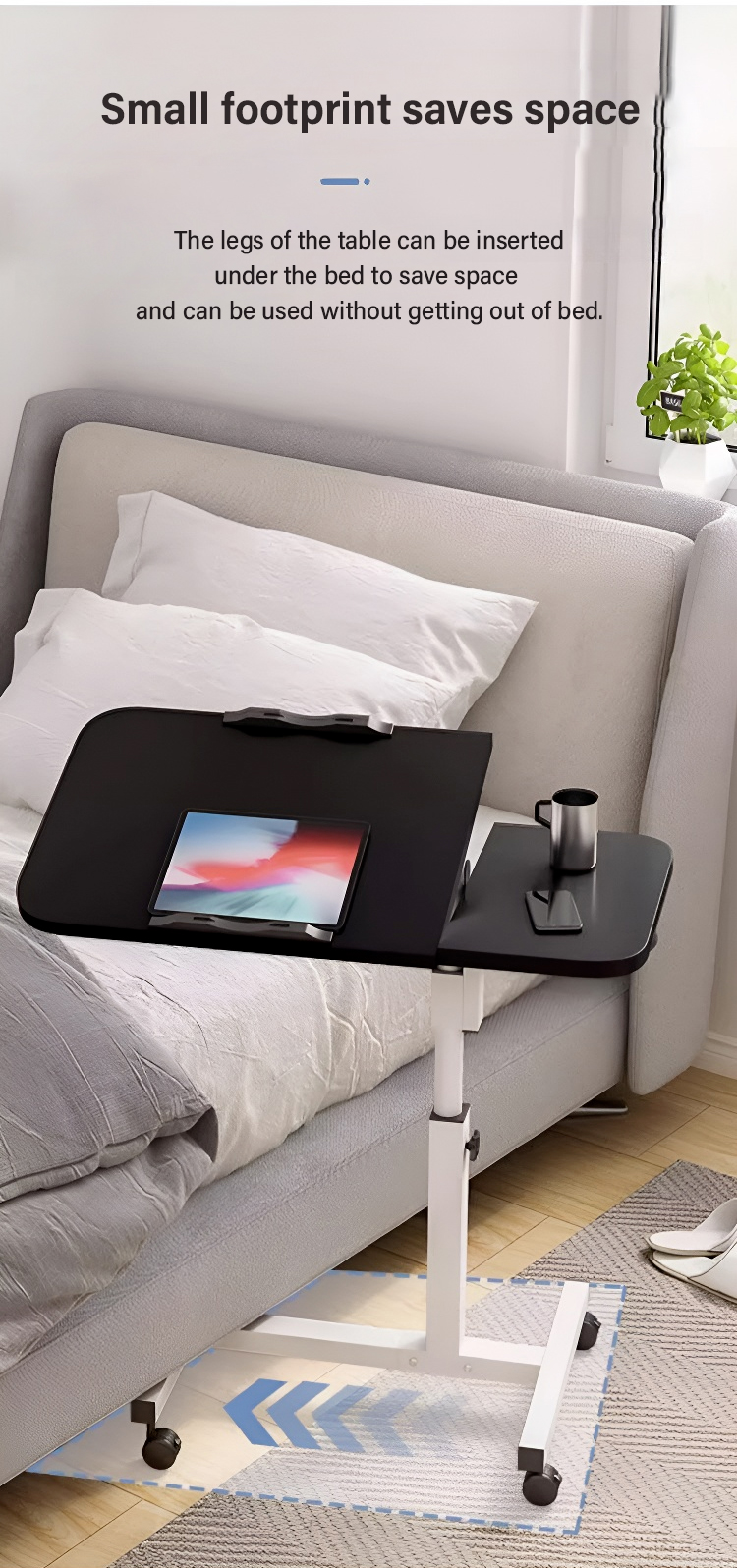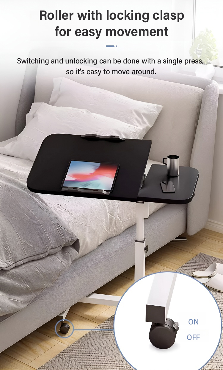 Adjustable mobile bedside table