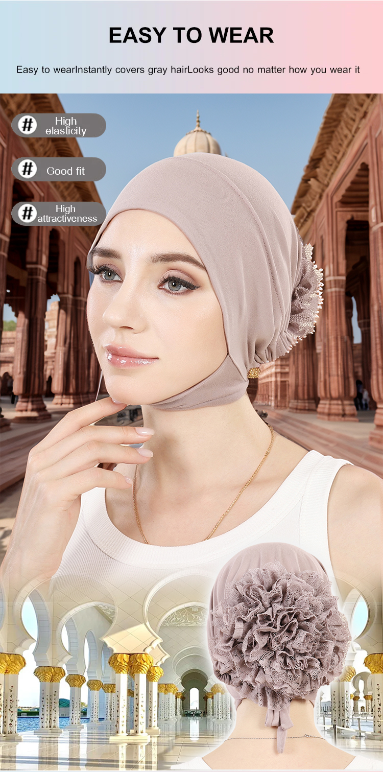 Inner Tudung Bunga Lace - Sanggul Bervolume & Terletak. Rahsia Muka Runcing & Inner Tak Melorot!